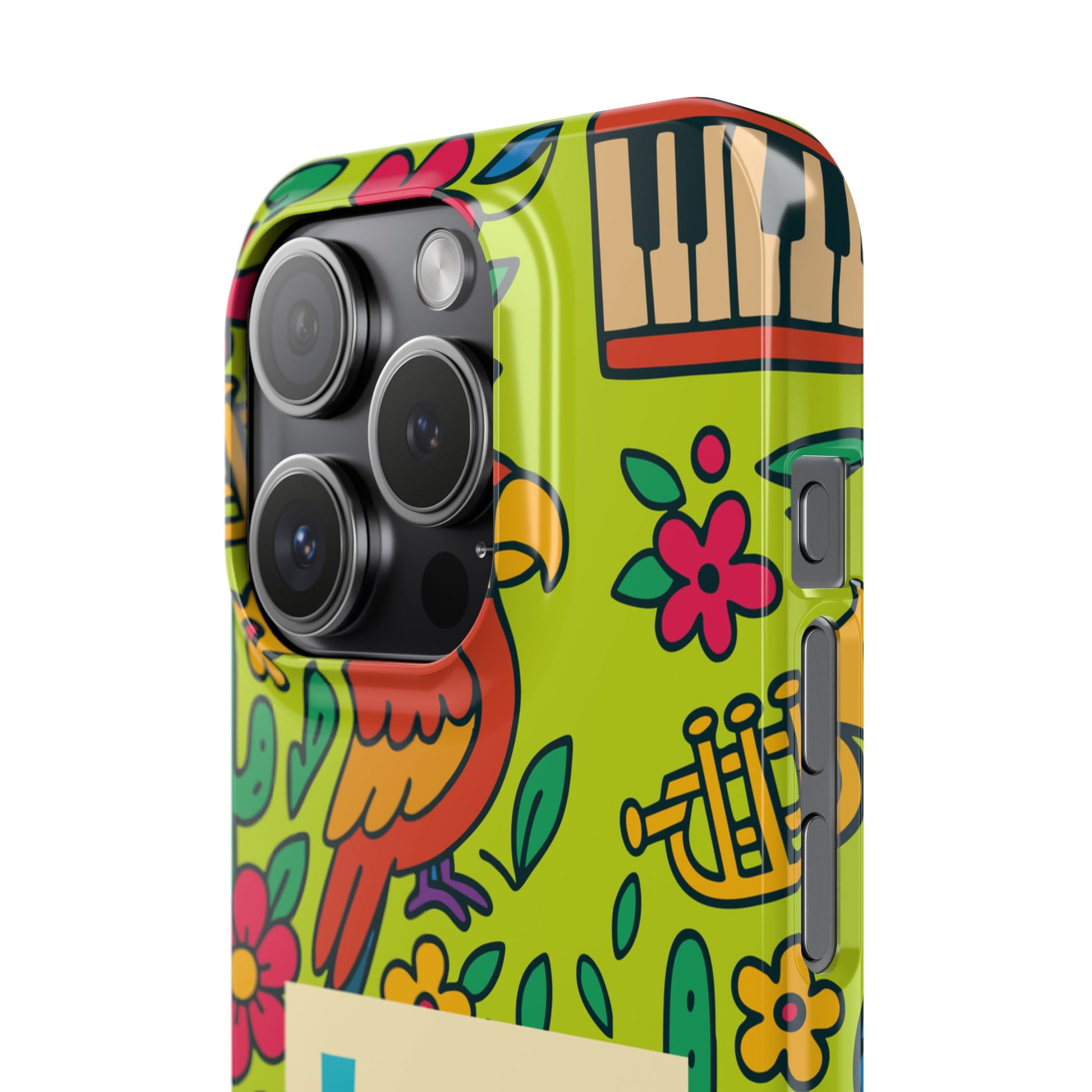 Infused with the energy of a live set, the Electric Verde Slim Case is a celebration of rhythm, color, and individuality. With its lime green tropical artwork and musical motifs, this design reflects the essence of La Calle Band’s bold performances and vibrant sound. Lightweight and protective, it’s made for fans who live colorfully and move with purpose.